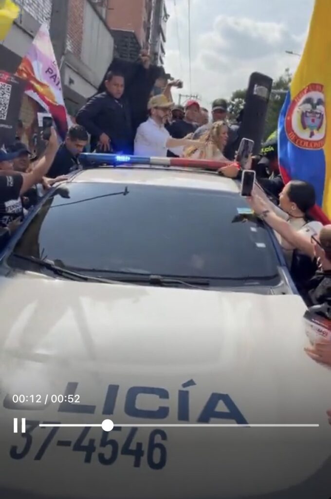 El episodio tuvo que ver con la visita de Abelardo de la Espriella quien anduvo por la ciudad montado en una patrulla y además estuvo haciendo campaña en el Metro de Medellín, una práctica que había salvado al Metro y a los usuarios de ser blanco de proselitismo en medio de las campañas electorales.