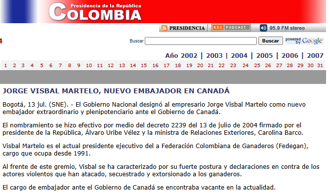 “Entre 1998 y 2005, mientras dirigía Fedegán y hacía parte del Consejo Nacional de Paz como alto funcionario del Gobierno de Alvaro Uribe, Visbal Martelo ejerció el paramilitarismo, fue asesor de los Castaño, e hizo parte de los 12 apóstoles.”