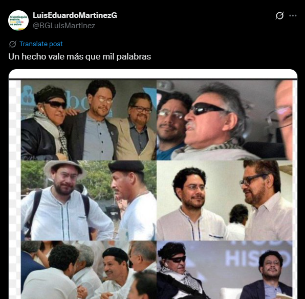 Martínez Guzmán posteó una serie de fotografías que pretenden desprestigiar al recién anunciado precandidato presidencial del Pacto Histórico, Iván Cepeda, y en las que se ve al lado de jefes de las FARC y que fueron tomadas en sus múltiples apoyos a los procesos de paz que se han adelantado en Colombia.